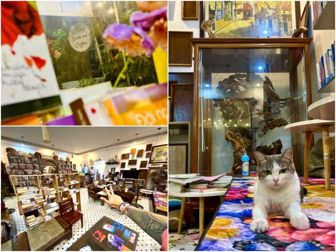 Time + Books Coffee Shop is adorable! It’s full of books and some wonderful wooden furniture. And a gorgeous wooden statue of the Four Spirits. There’s a beautiful mirror with the saying “Mirror, mirror on the wall / Who’s the fairest of them all?”. Love it! And some beautiful photographs of Vietnamese people and culture. It’s a lovely place to chill and enjoy some quiet and peaceful time.