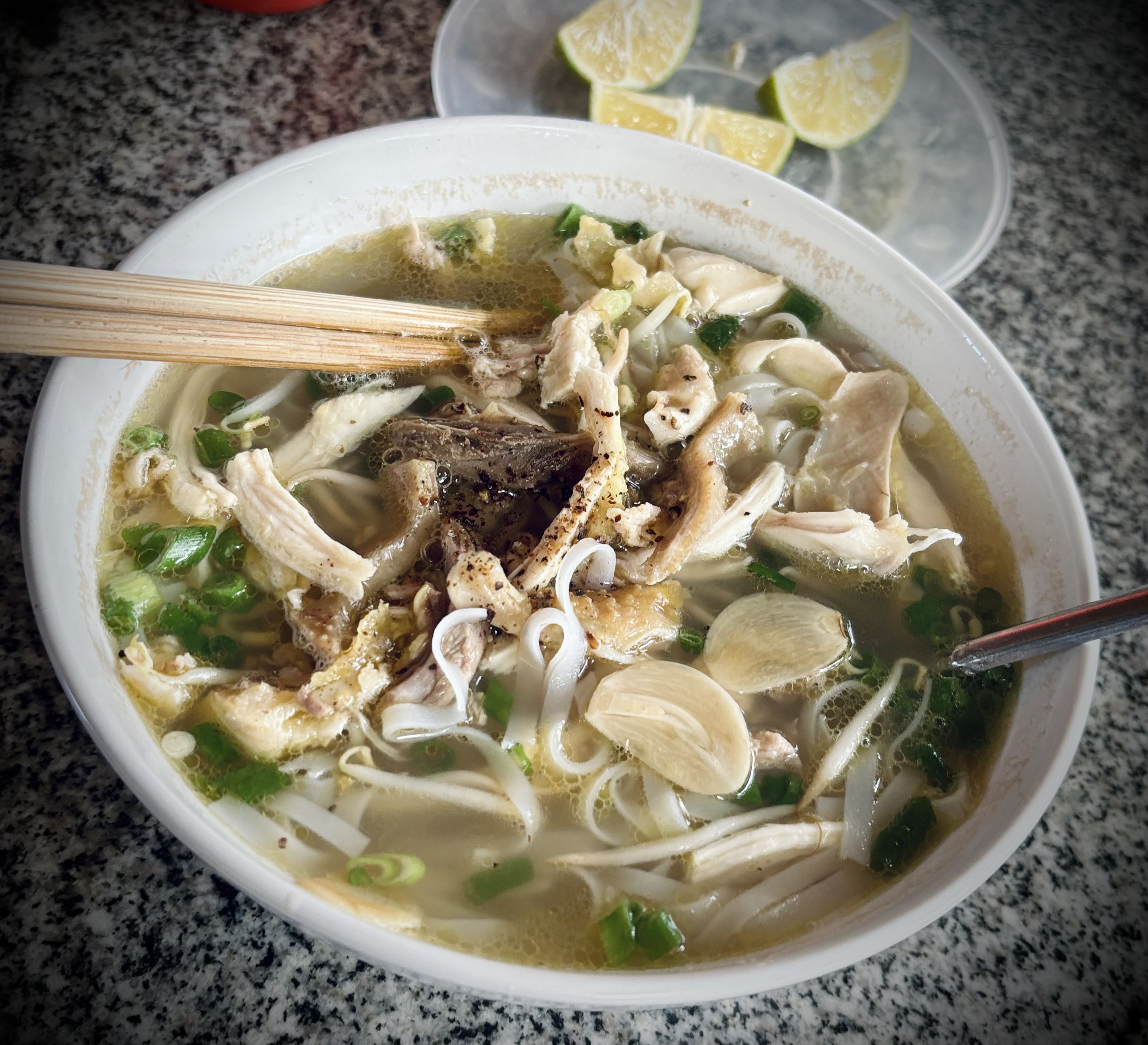 I try to hitchhike on the way and a very nice man stops for me. He’s only going to Ha Thin but I decide to come with him anyway. He’s really happy to help and we stop to have breakfast. I have Bun Cha (chicken soup), and he has Pho Bo (beef soup).
