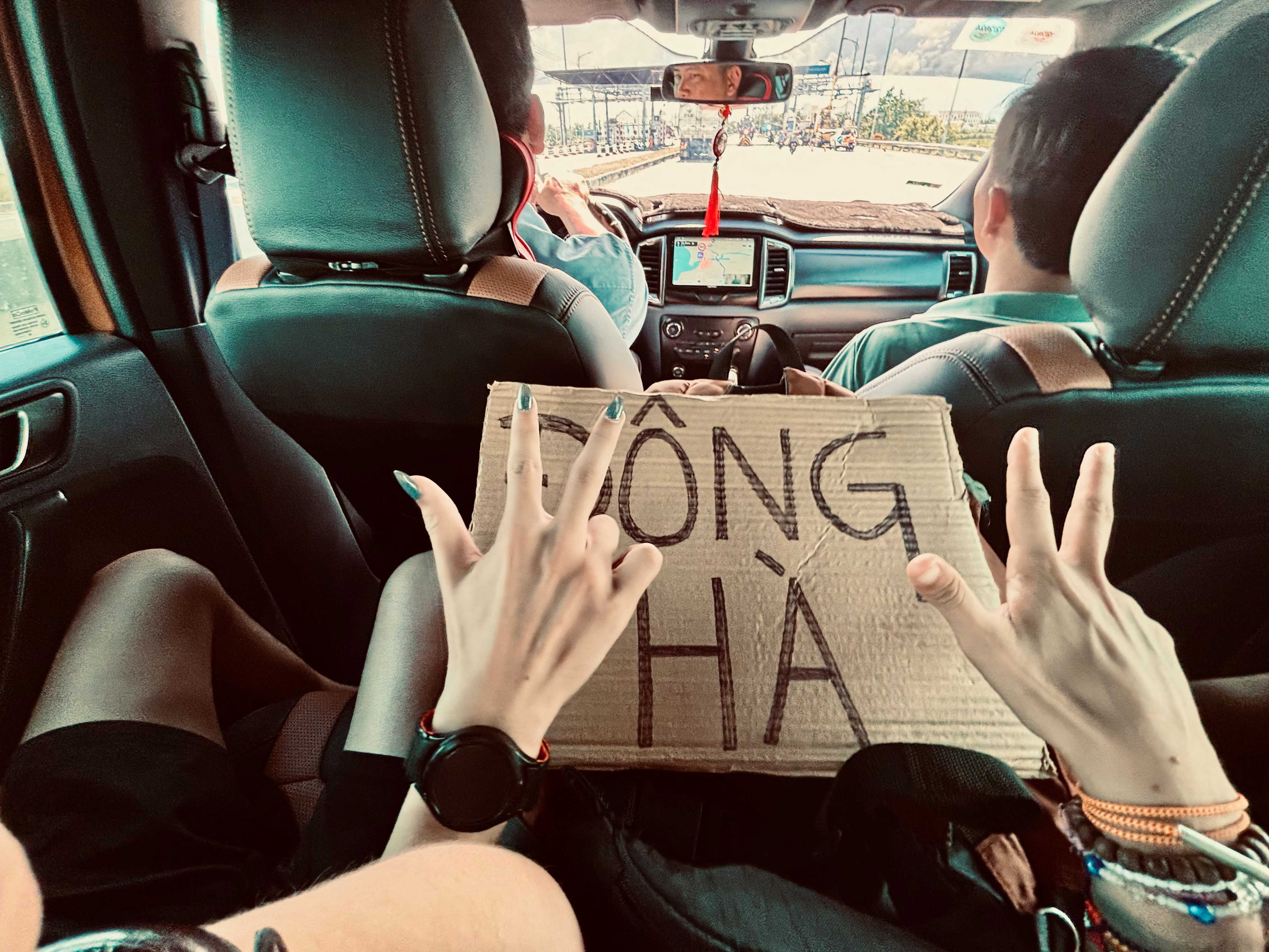 Finding the best highway to stand is not always easy task. Sometimes you just have to use your guts. This one which I chose is not so bad. An orange pick-up passes by, but I see them turning around and coming back. At first, I am not entirely sure about them, and I wonder why. But a young man sitting on the back, with stylish black long nails, gives me a good vibe, and I decide to get in. They are going all the way to Dong Ha. Yay!