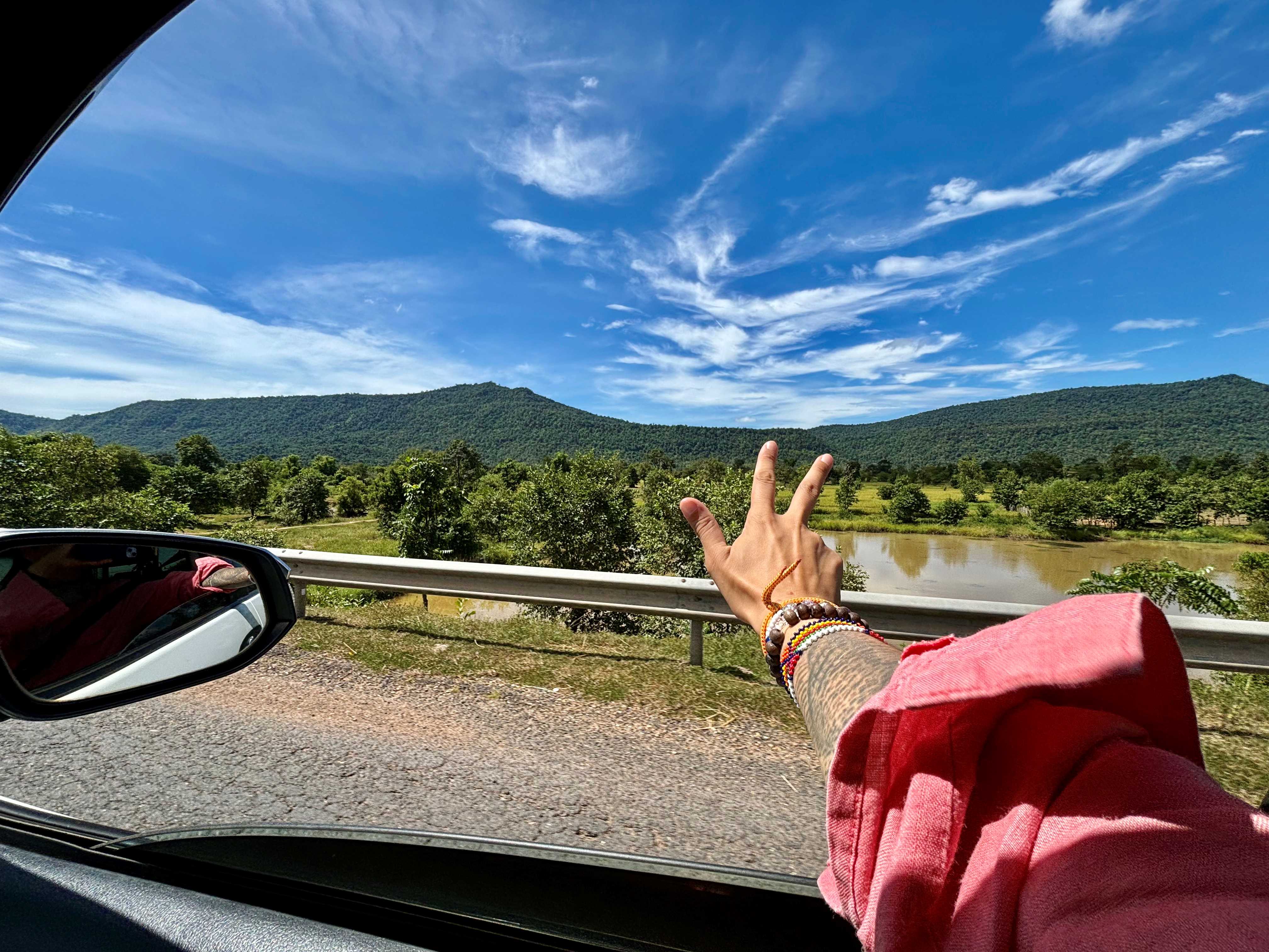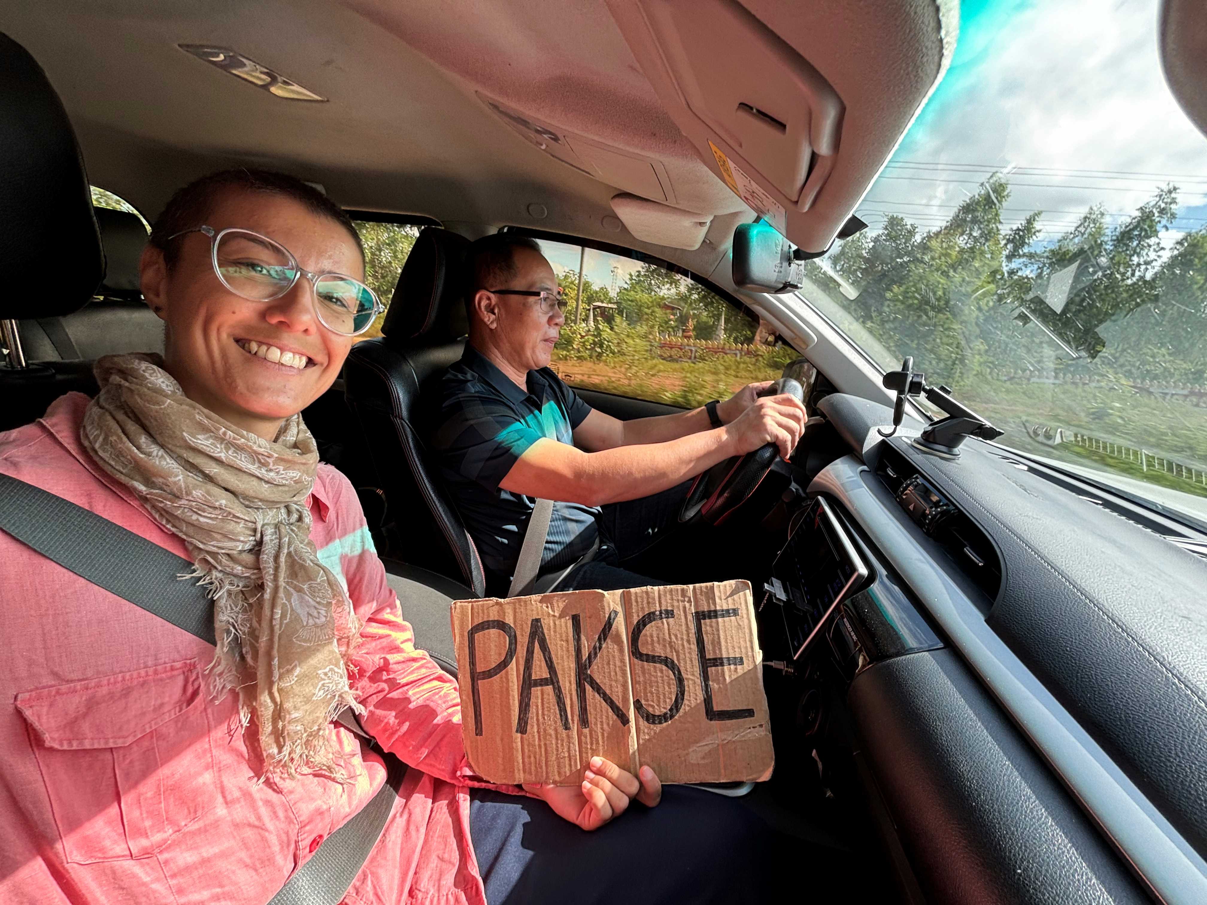 The next people to stop actually save me from a strong rain, which falls a few minutes after I get in their car. This time they stopped quite quickly. Sanger and Antchep work for the government, and they are going to Don Khong. Ha!