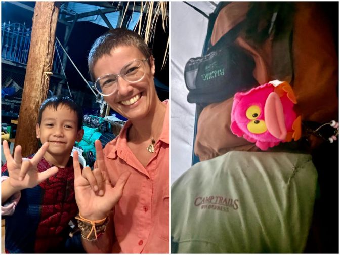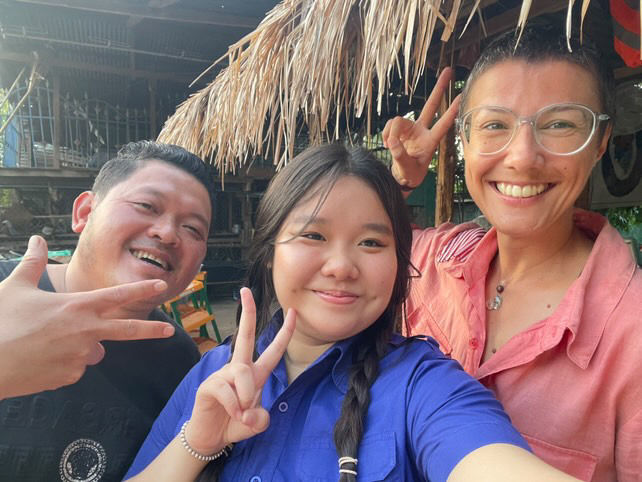 I am now walking, trying to make sense of this bad luck. It’s sunny and super hot. I hold my sign, which reads Xeno. A truck stops, and the young couple from inside tells me they can take me a bit outside Pakse. OK!
