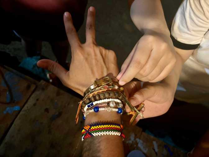 Sindy and Pay gift me with two super cute bracelets. That’s so sweet! After they put the bracelets on my wrist, we take a photo with each one of them holding the one they gave me.