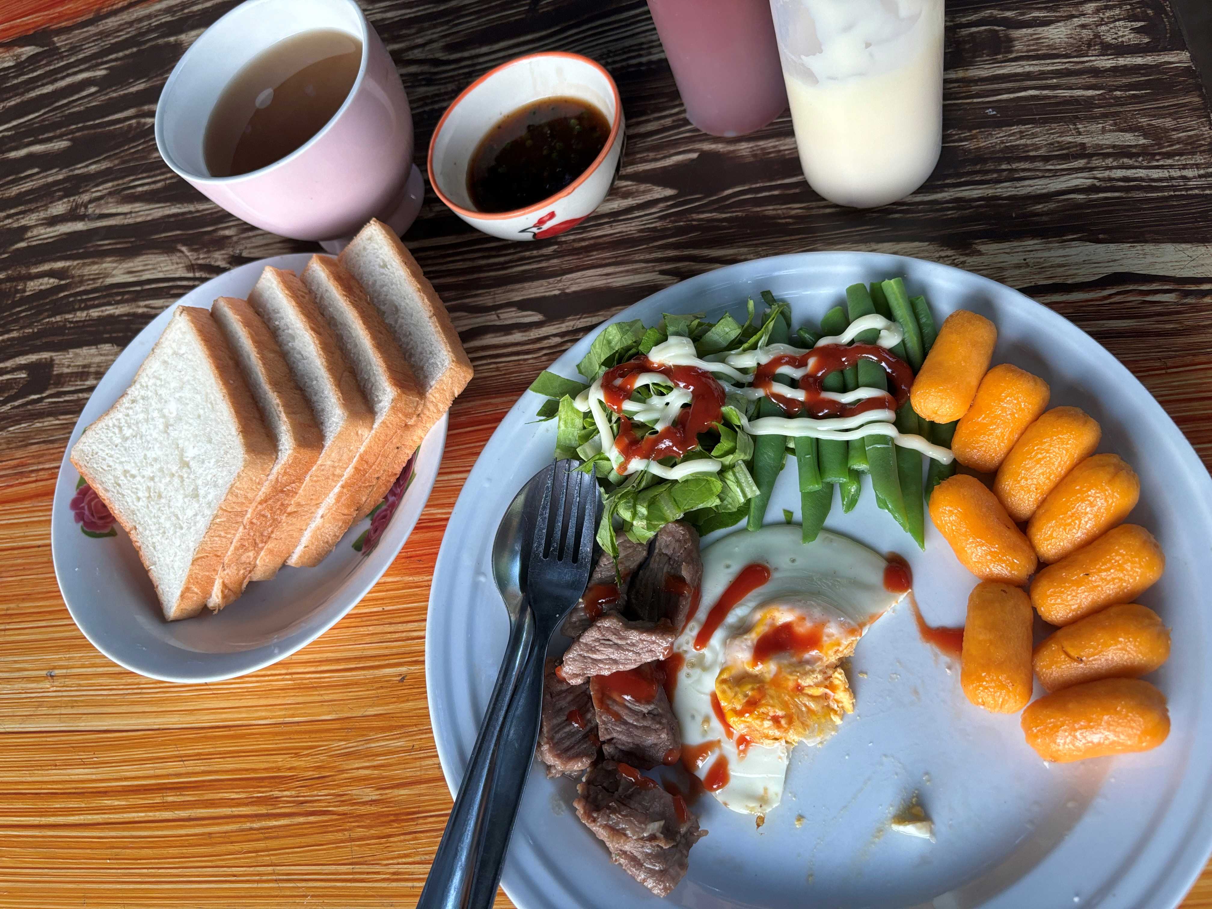Sindy’s father, Taeng, is very attentive and take a good car of the hut where I will have my tent for tonight. How considerate! He even brings a fan! He is also a wonderful cook and prepares me a delicious spaghetti! I haven’t had pasta in a very long time! It is really delicious! They even get me a sparkling sweet wine, strawberry flavour. I cannot believe it!