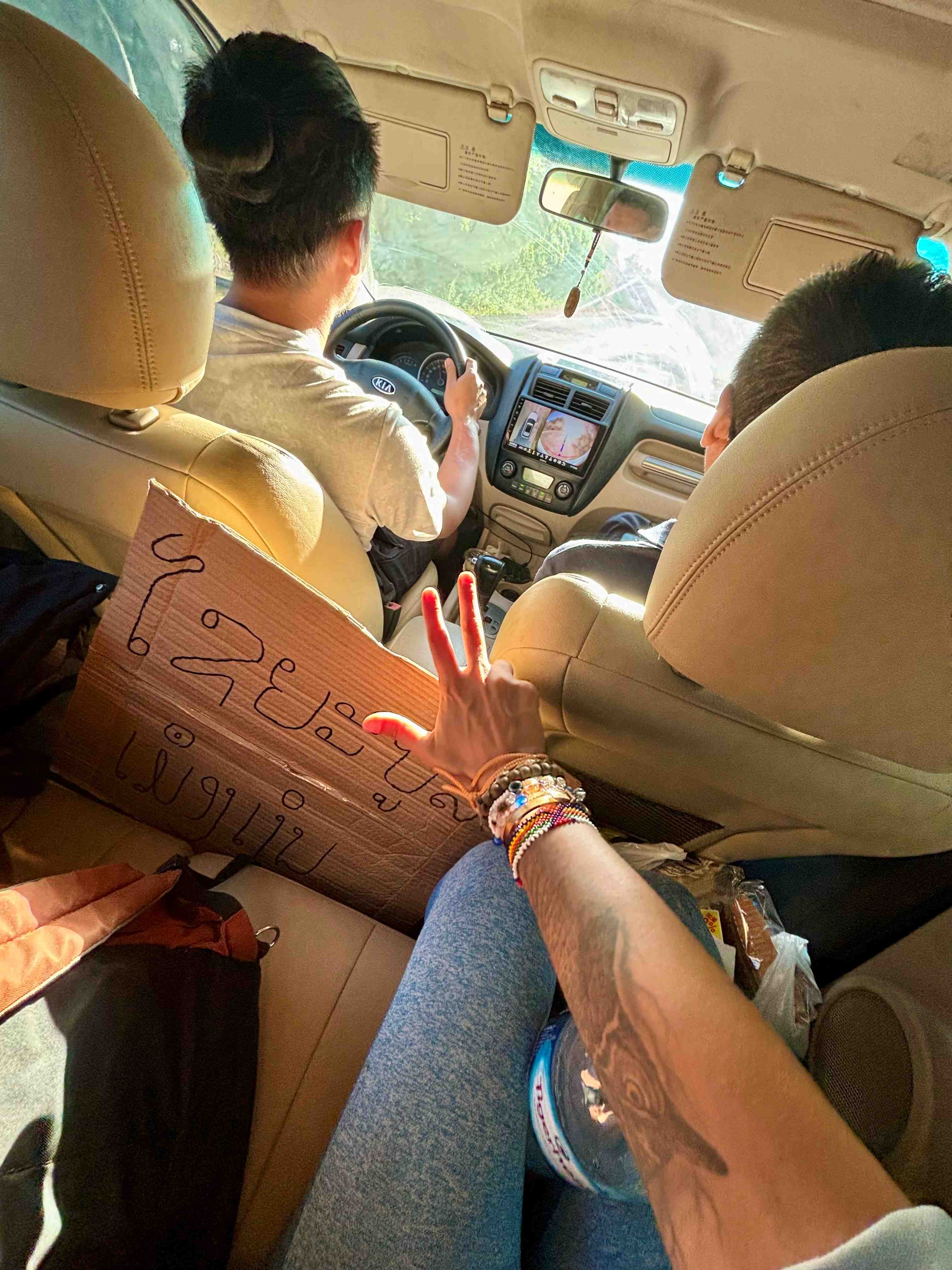 In my sign it’s written Xayaboury, the biggest town before the border, and in a junction. A young man, from a transport company, stops for me. It takes some time for me to understand that he is just going to the train station, which is even more outside the town, so I come with him to another direct road to Xayaboury.