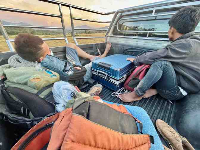 Again, in that intersection, it doesn’t take long until somebody stop for me. This time I go in the back of the pick-up, joining two other guys already there. It’s not a very long drive, and the views are great too. One of the guys even take a nap on my backpack. Laugh.