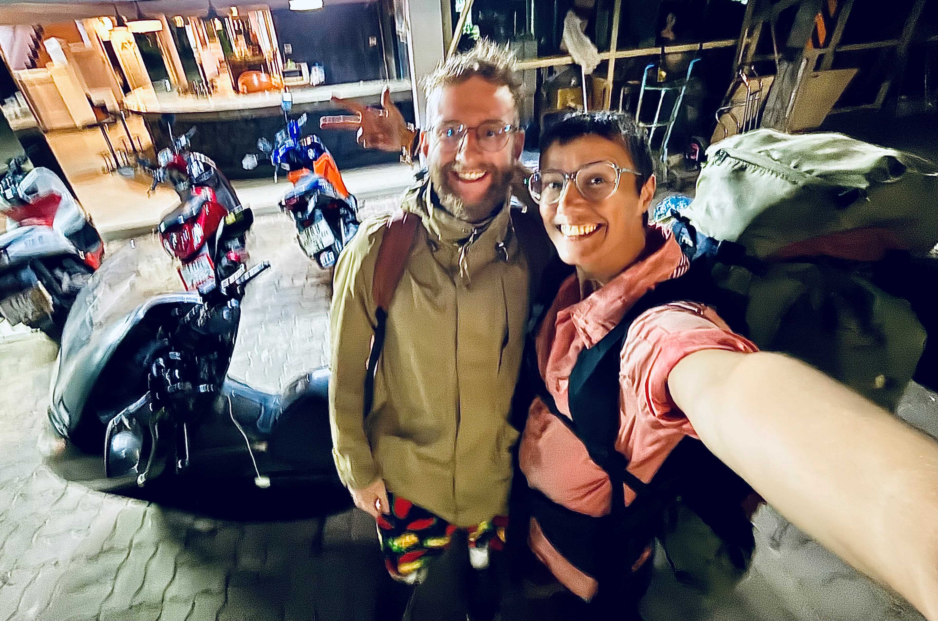 At first, it’s a bit tricky in the bike. As I am carrying The Hulk, holding on the back of the motorbike is very tricky, because I keep being pushed back. Plus, Ilya is going over 100 km/h, and as there is a space in between us, I feel a lot of air pressing me backwards, which sucks! My hand, wrists and knees start hurting because of all the strength I used to hold on tight to the motorbike.