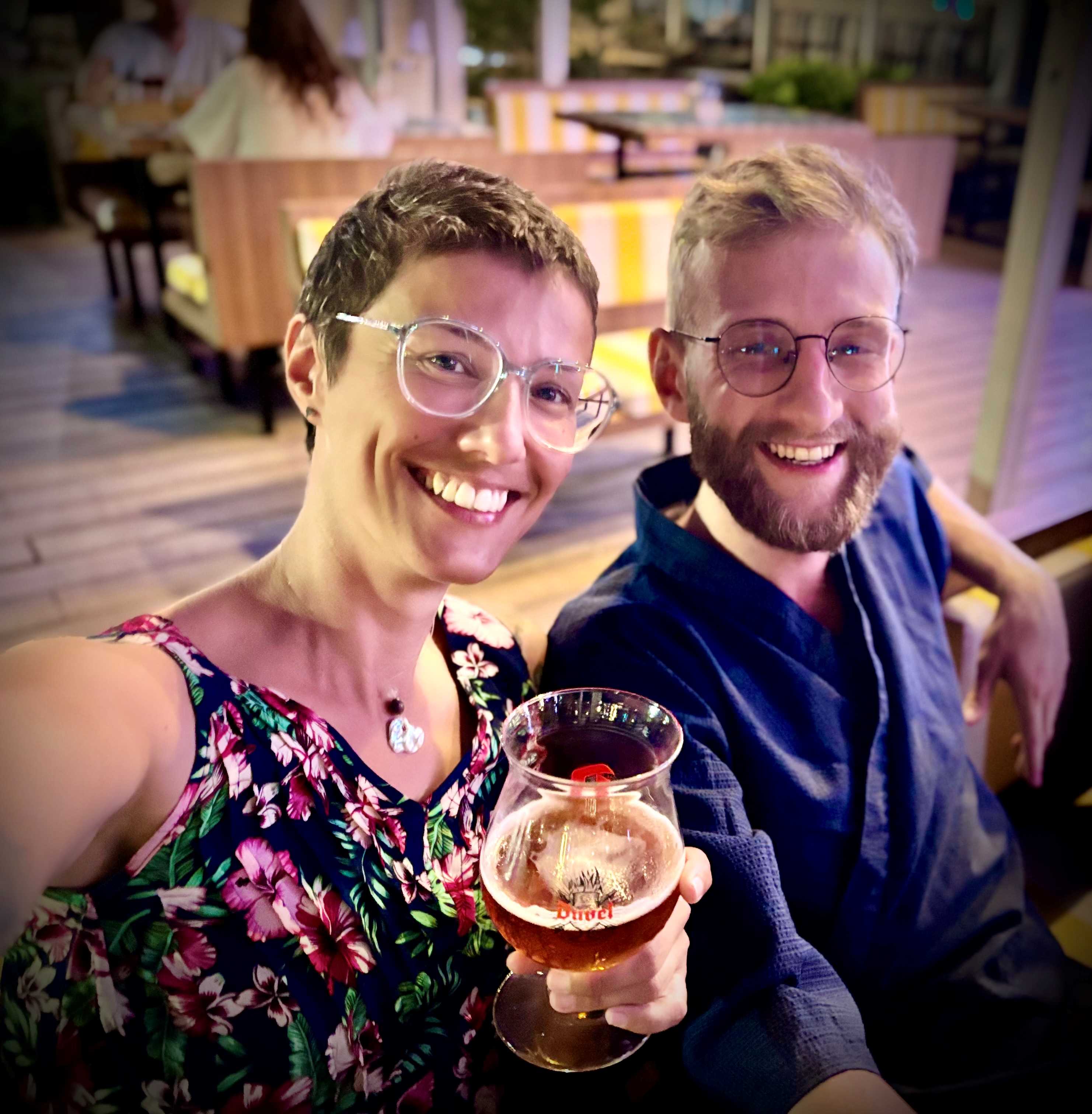 Once there, Ilya tells me that as he has booked a hotel room, I can stay with him tonight if it’s fine by me. He even tries to get a room with two single beds, but there isn’t any available. Ilya also invites me to join him and his friends for a beer. OK! After we both have a shower, we go to this quite fancy bar, in a mall area. There are some people around, but it’s not super full.