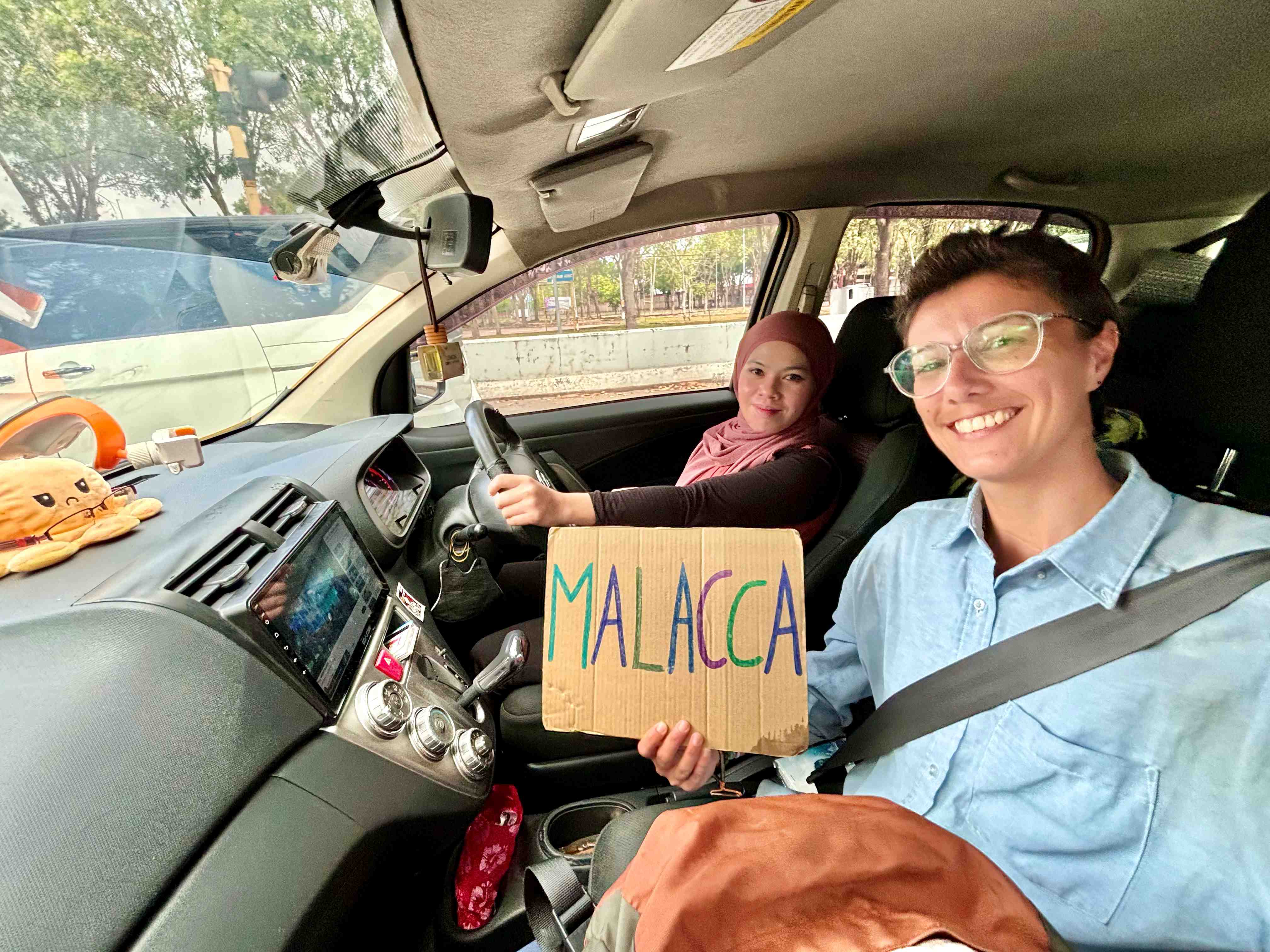 A young man in a nice 4×4 stops. He’s smart and honk the horn when he passes by me, which gives me the chance to show him that he can park some 15 metres ahead of where I am standing. I simply thought he was going to Malacca (why I didn’t ask?), and after telling him that I cannot pay, I get in. But he wants to take me to the bus stop, as he is only going to work. Oh, Loki! How I struggle with this. Why someone would be standing on the road, with all their luggage, holding a sign with the name of a city in that country, if they are simply trying to go to the nearest bus station? Is this really to hard to get it?
