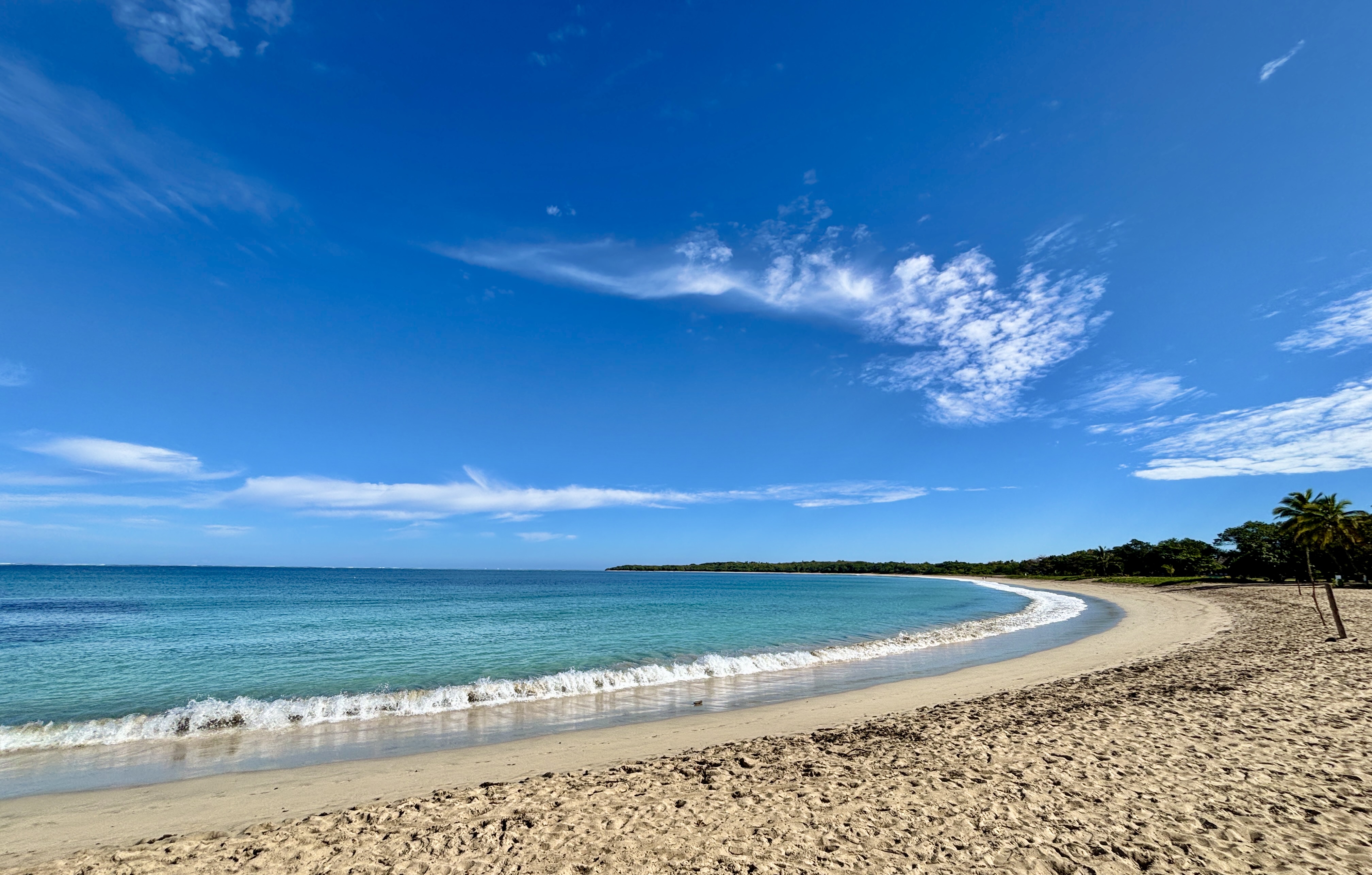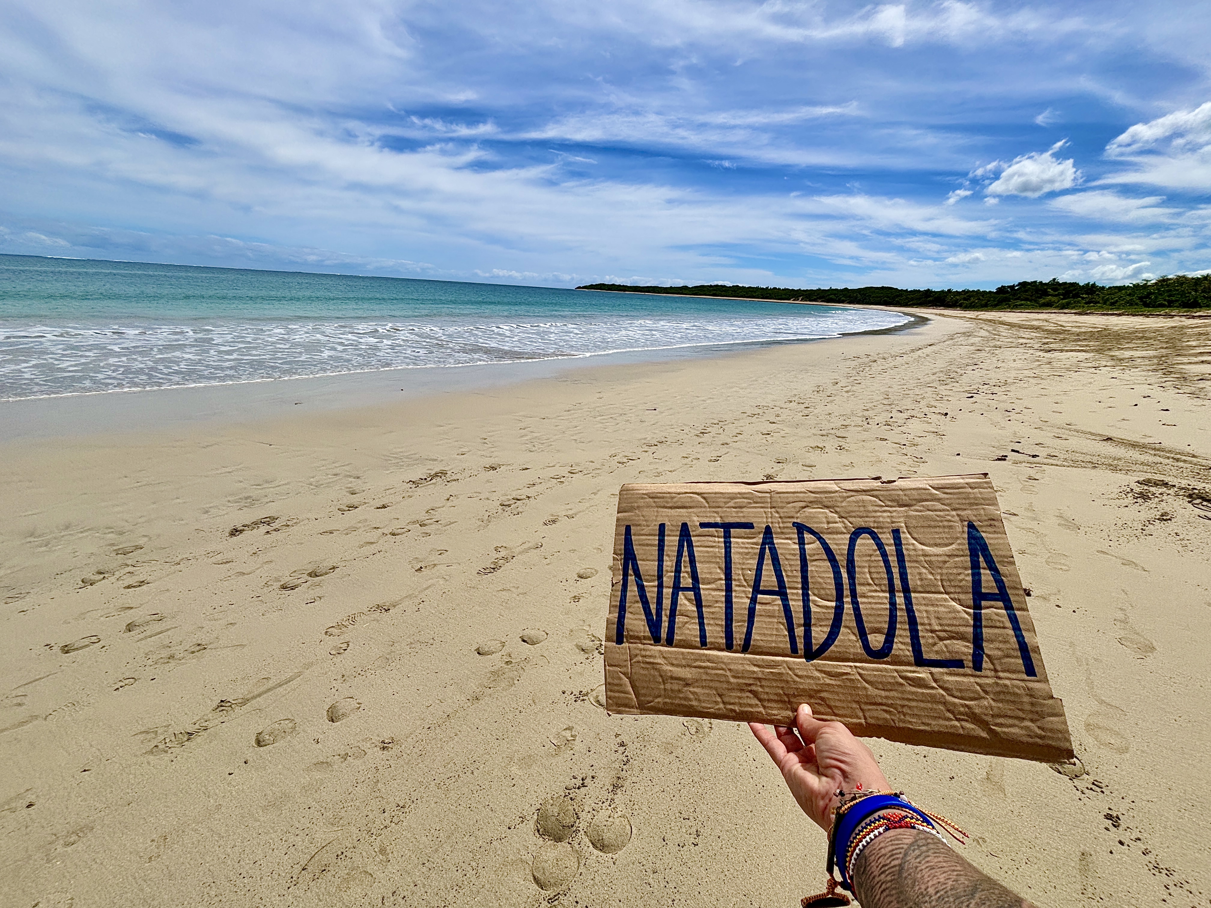 Natadola Beach is very beautiful! It’s a long beach of white sand, turquoise and pristine waters. There’s not much going on apart from two resorts by the end of the beach, where there’s a little channel and a small island. One of the resorts, Intercontinental, is massive. I stay by this resort because it’s where I can find some shade, under coconut trees.