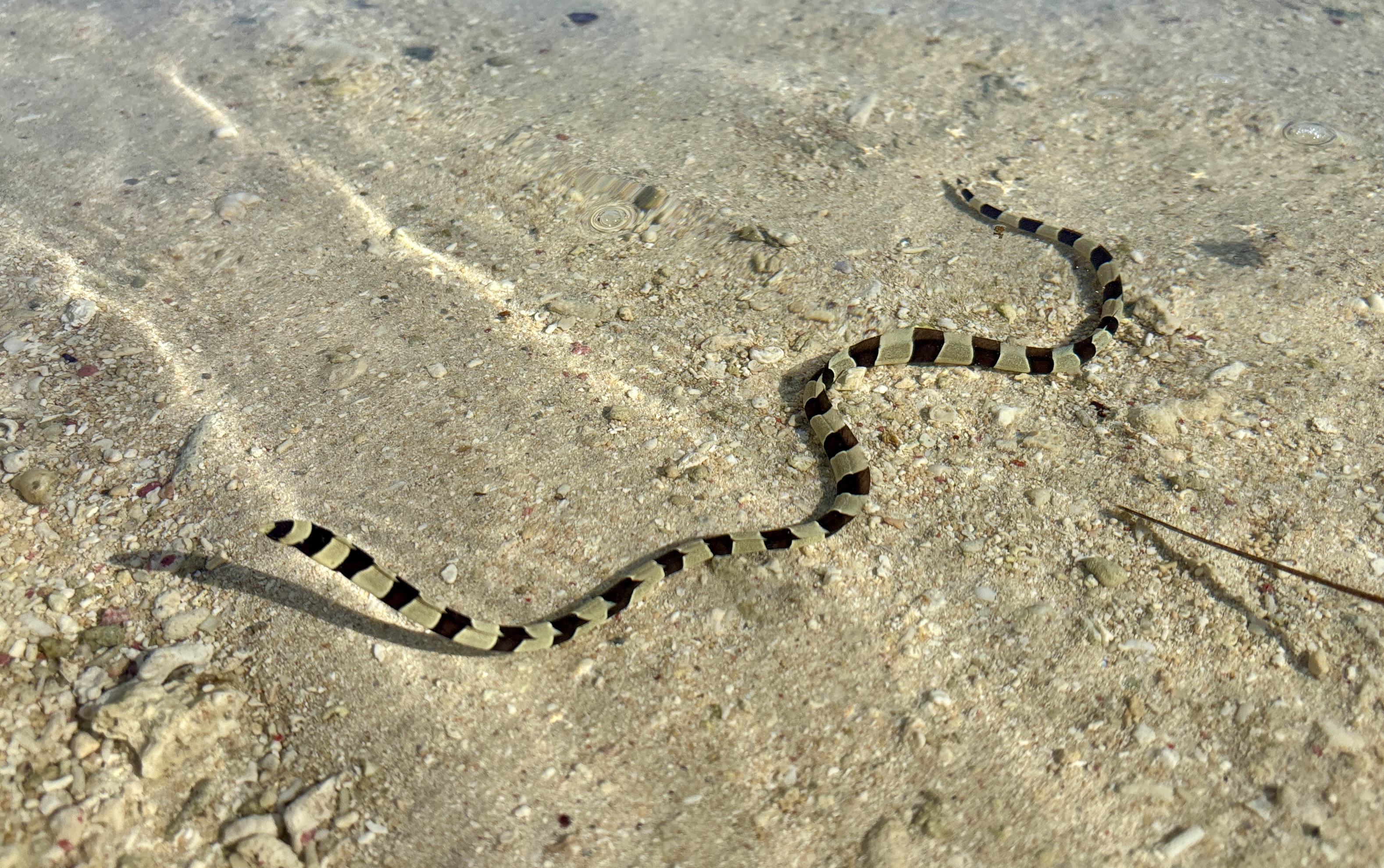 The day before I leave, we go to the beach behind the golf course (closer than Natadola, a bit less awesome, but still nice), so the girls can play and swim after coming back from school. It’s a piece of paradise there, super quiet and with nobody else apart from us, and a cute tiny little water snake.