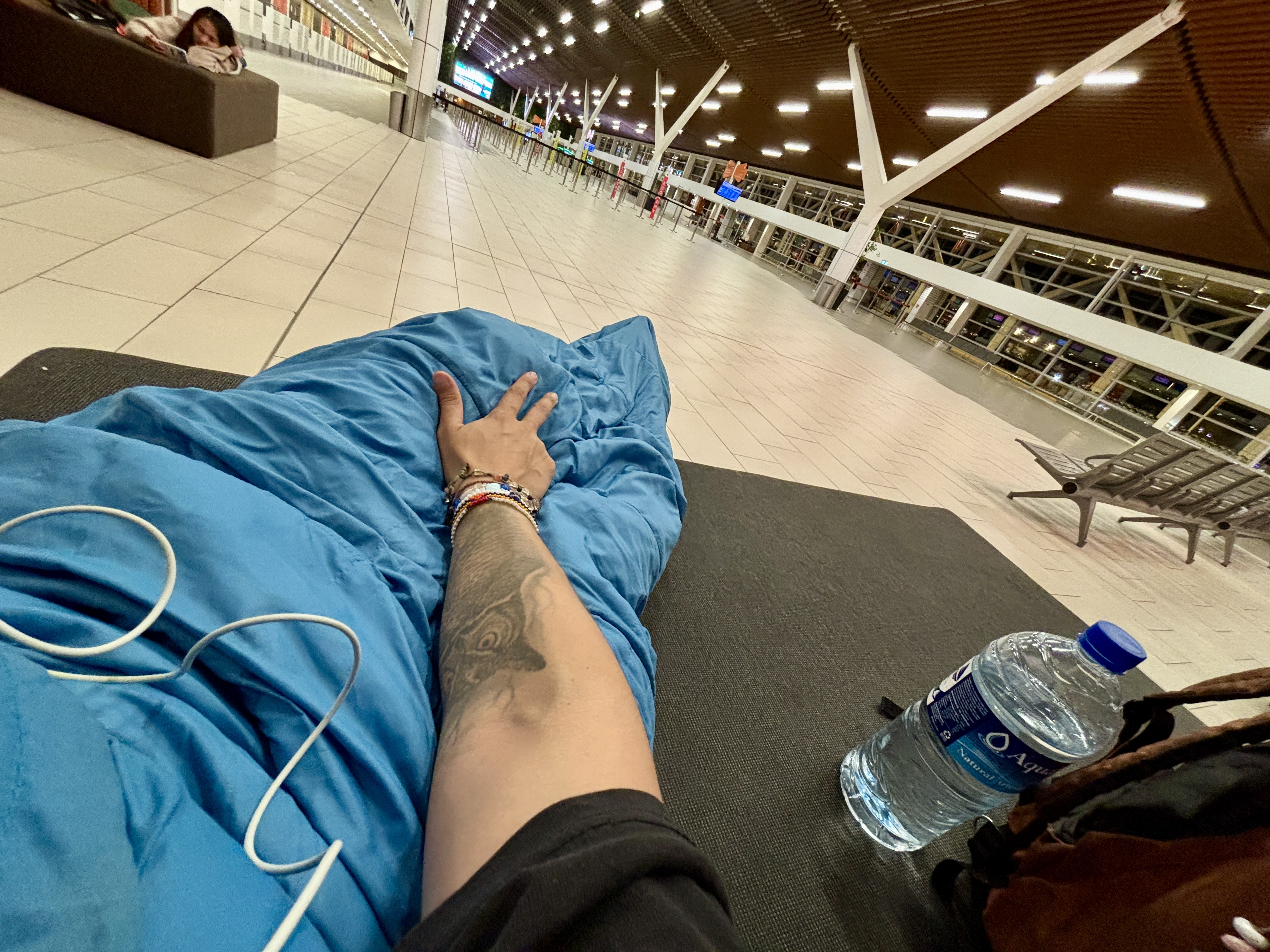 Only when I’m on a video call with a good friend of mine from Brazil, it’s that I realize that my problem are the bed bugs. My elbow gets huge, like scarily huge, and soon after I find one of them outside my sleeping bag. Oh, what a terrible feeling. What do I do? At least nothing else happens through the night. You see, if it wasn’t for the bed bugs, Nadi Airport would actually be the best airport to sleep ever!