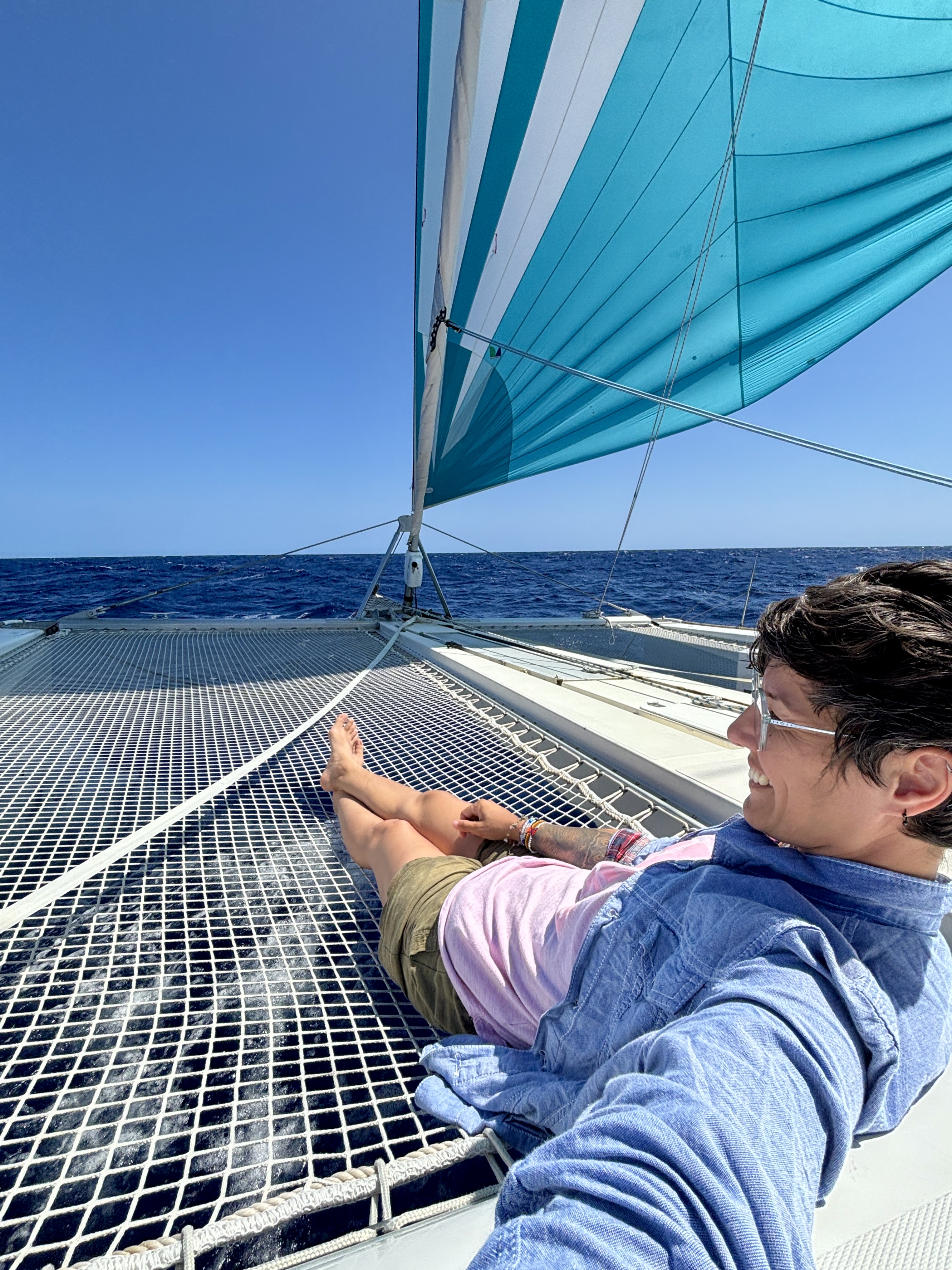 Before and after my shift, I sleep outside, in the cockpit, because I know that in my cabin I would feel too bad, being in the front of the boat. So I actually don’t have any problems sleeping.