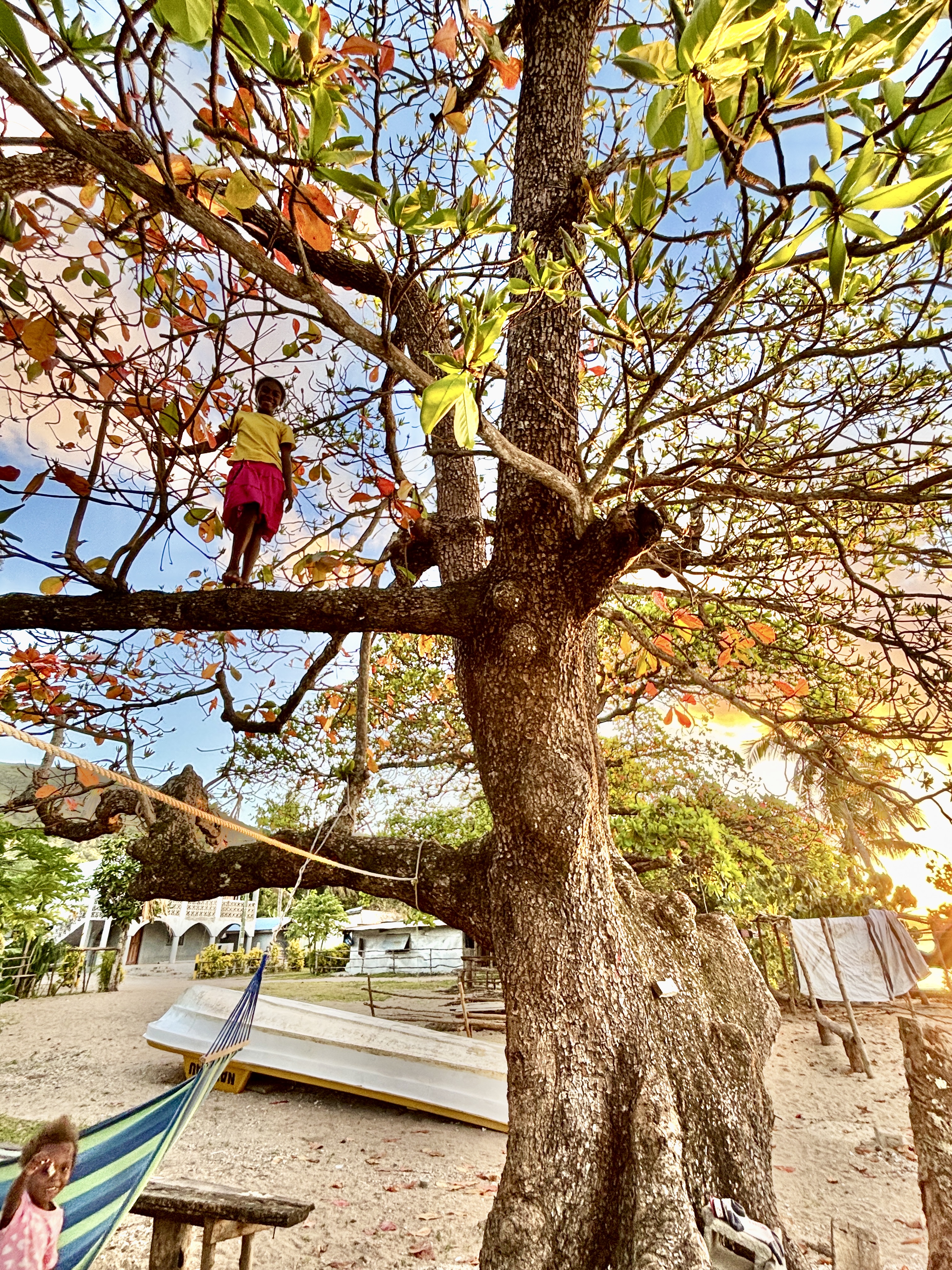 Selena gives me some of the local nuts, as we are sitting under its tree. Then she climbs that tree, in like two seconds. We take photos together and she takes photos of me and the sunset. I don’t really get anything to eat at night. It’s a bit different here in Vanuatu than in Fiji, where everybody is always inviting everyone to eat, no matter what. It’s not only a matter of different culture, but also, here in Vanuatu people are way less privileged than in Fiji, with poverty rates being much higher than there.