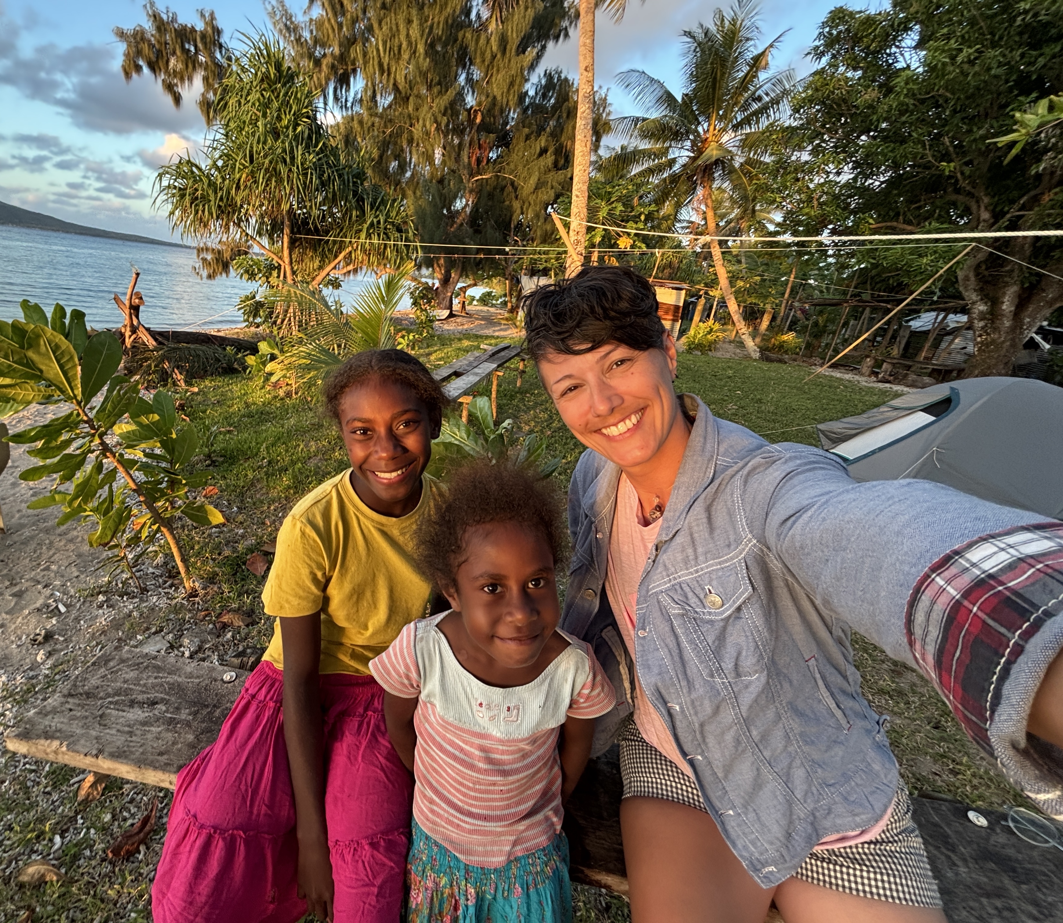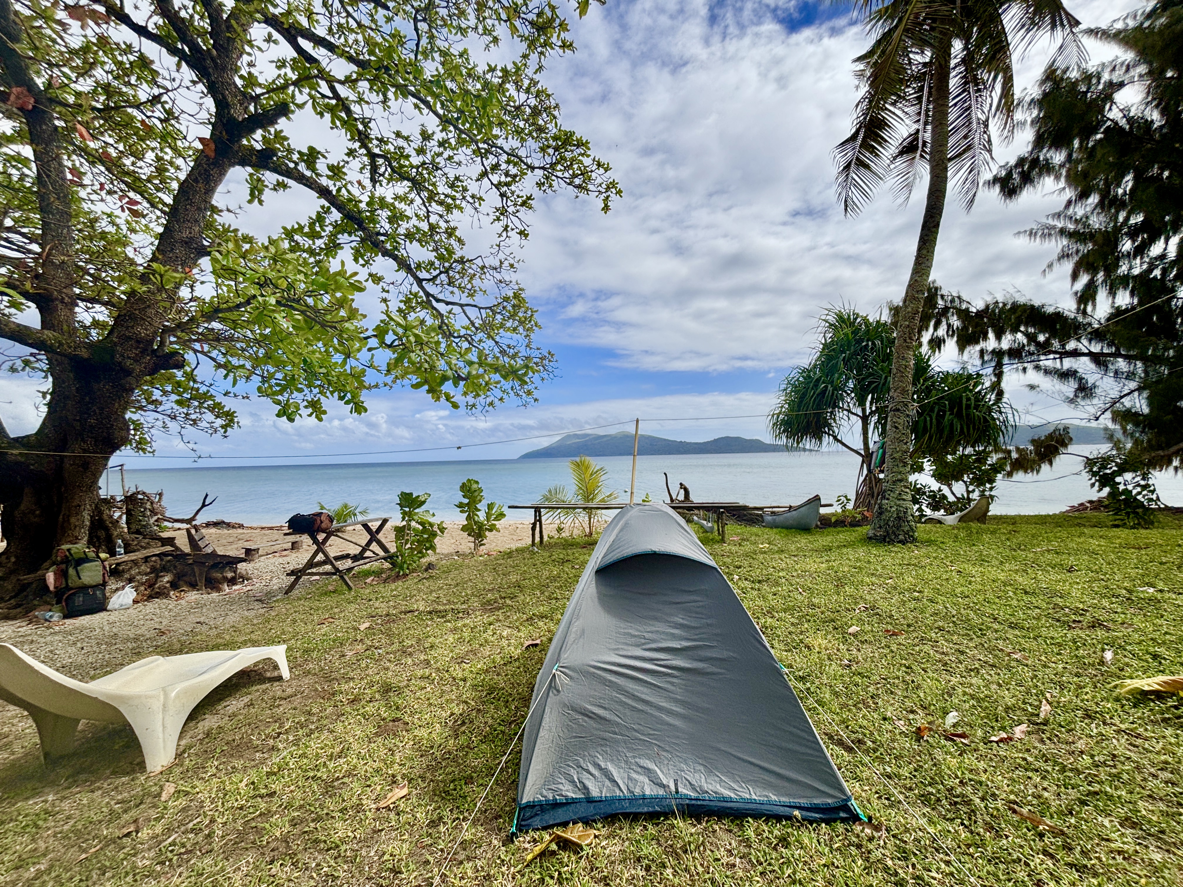 Elizabeth is a lovely lady, and she’s the sister of the chief. Great! She shows me to a great spot, with flat green grass, and just in front of the beach and her house. She tells me about two other foreigners who stayed with her once, a long time ago, and she tells me that the reason why I cannot stay with her is because now she has much more people already living with her. I tell her that there’s no problem at all, and that I’m more than happy with camping. I also met some of her grandchildren, including a young girl named after her, and Selena, a 12 years old girl, with whom I would spend a lot of time talking and interacting.