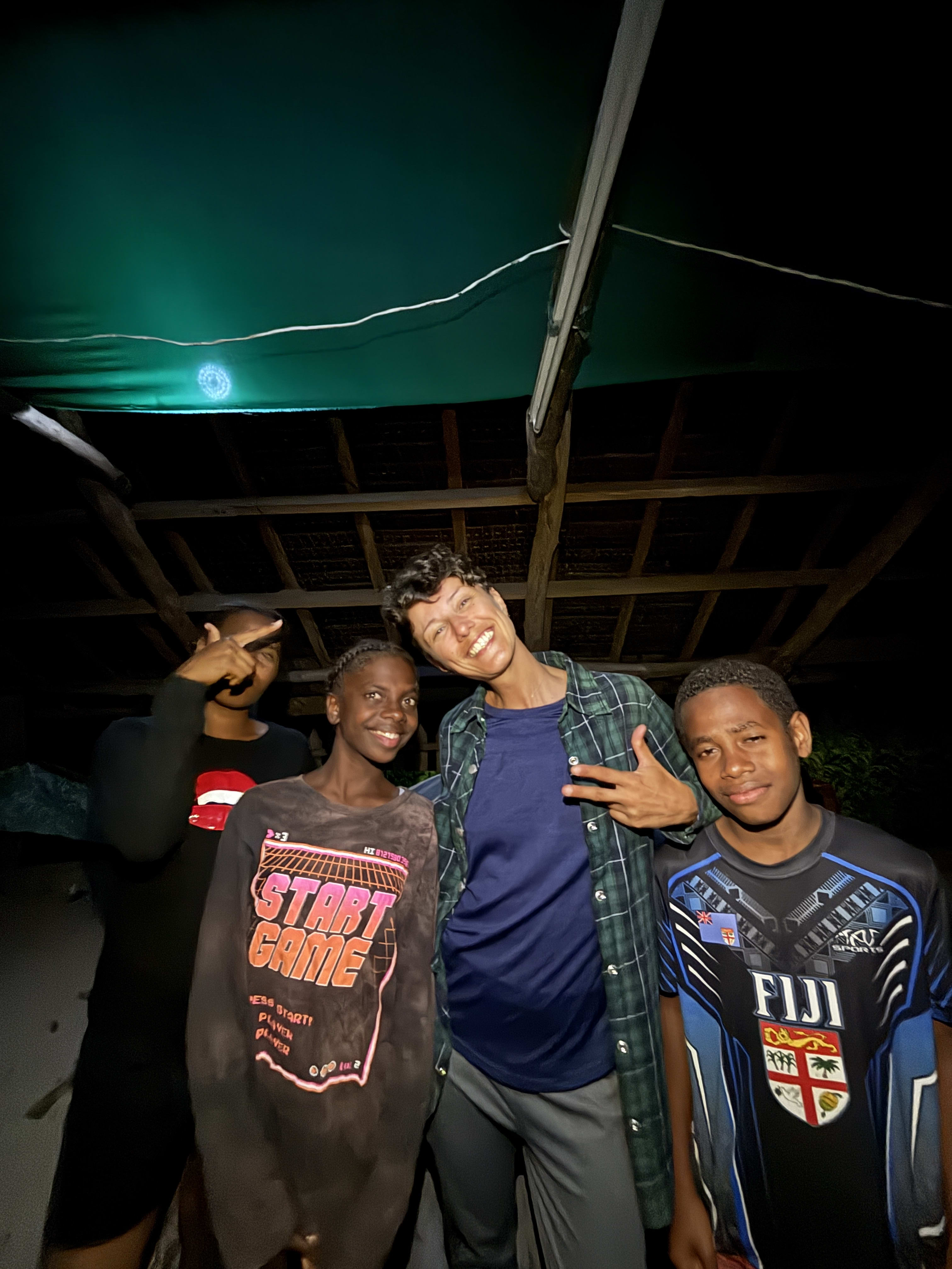 I take the boat of Trishi’s family with all of them apart from Jason. There are also lots of other people, so the boat is basically full. We have to use a big plastic as a cover for the splashes from the waves, which are many. We have to drive slowly, so it takes us some time to get back to Emua Wharf. But we arrive safe and sound.