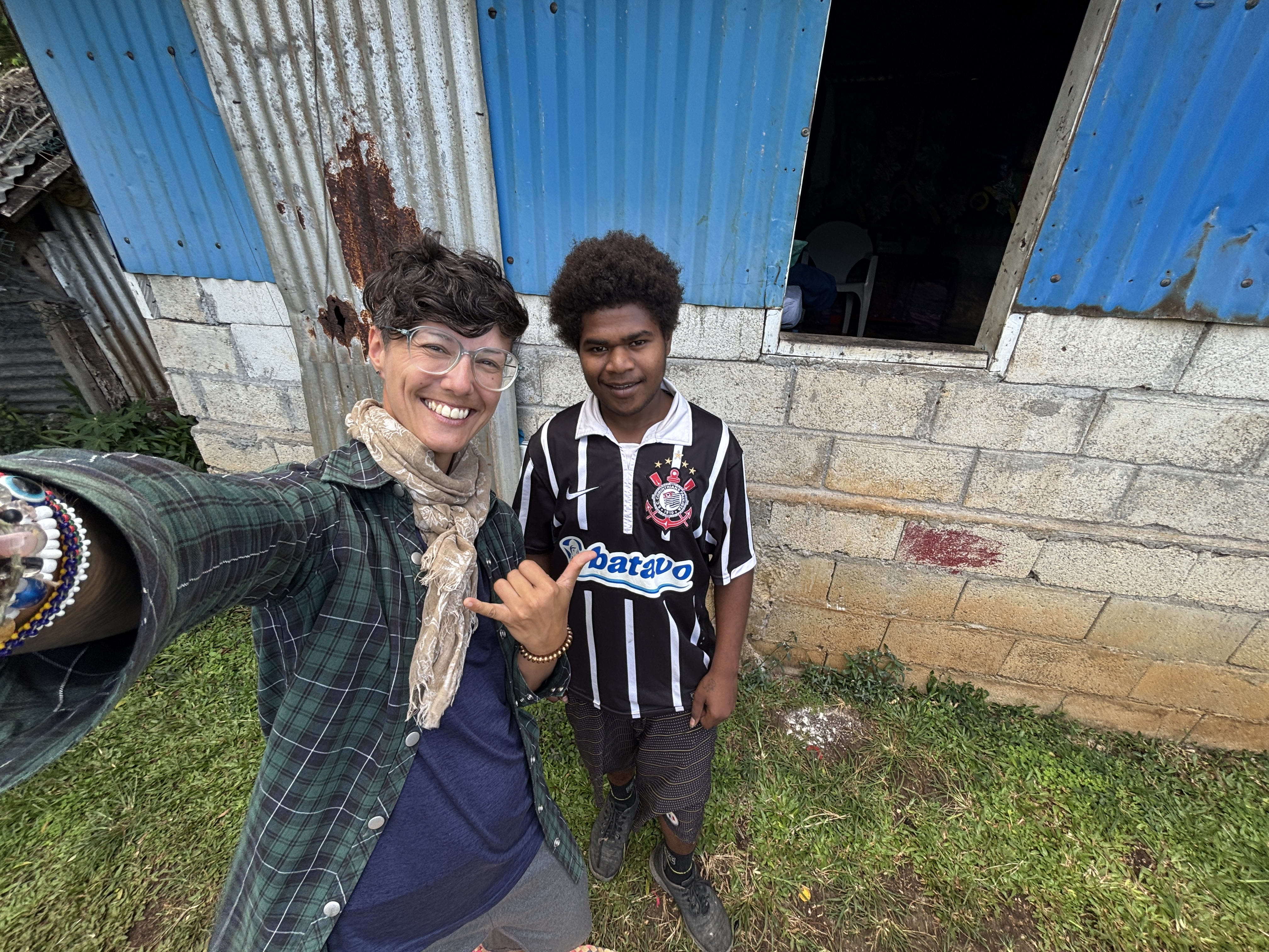 The driver is a man, I’m calling him R. because I don’t know how to spell his name. He’s with Linda, and they are from Tanna. They are nice and R. has long and thick dreadlocks. They drop me off slightly outside Teouma because they are going to a shop around here.