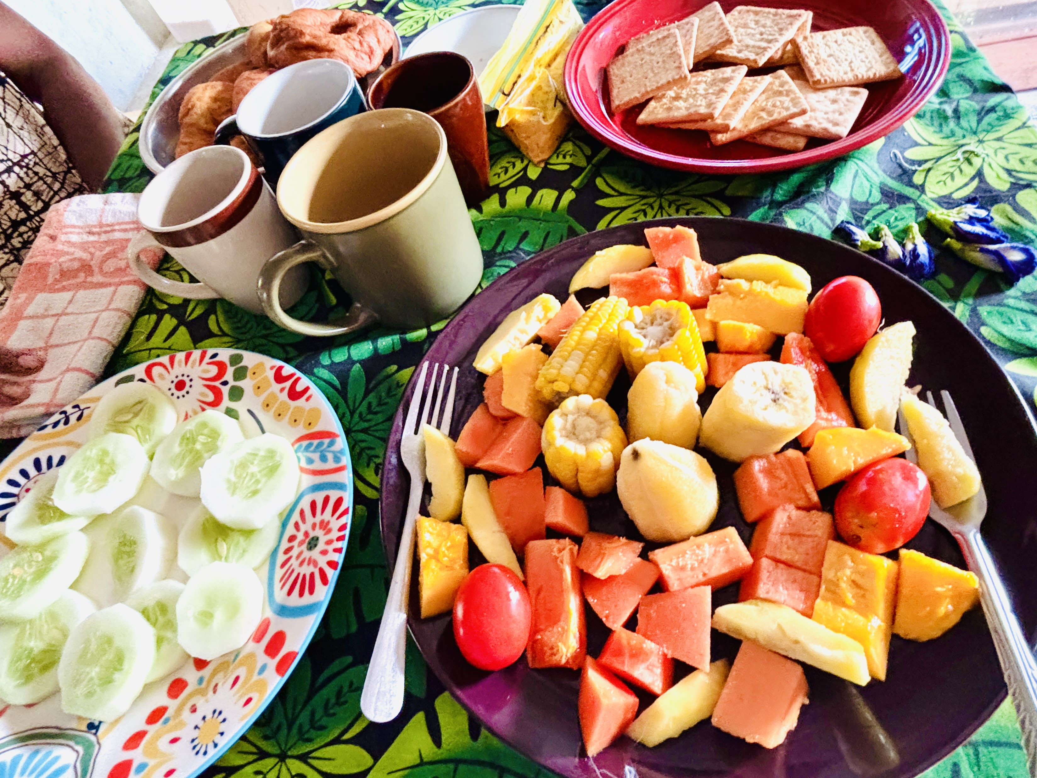 Mum prepares a beautiful buffet for breakfast. It’s amazing! The granddaughter goes to school soon after. She’s a beautiful, tall and sweet girl. I’m also going to the school, not the same one though, just to have a chat with the students. I spend some time with dad before leaving, and then one of the neighbors, Johnny, walks with me to the school.