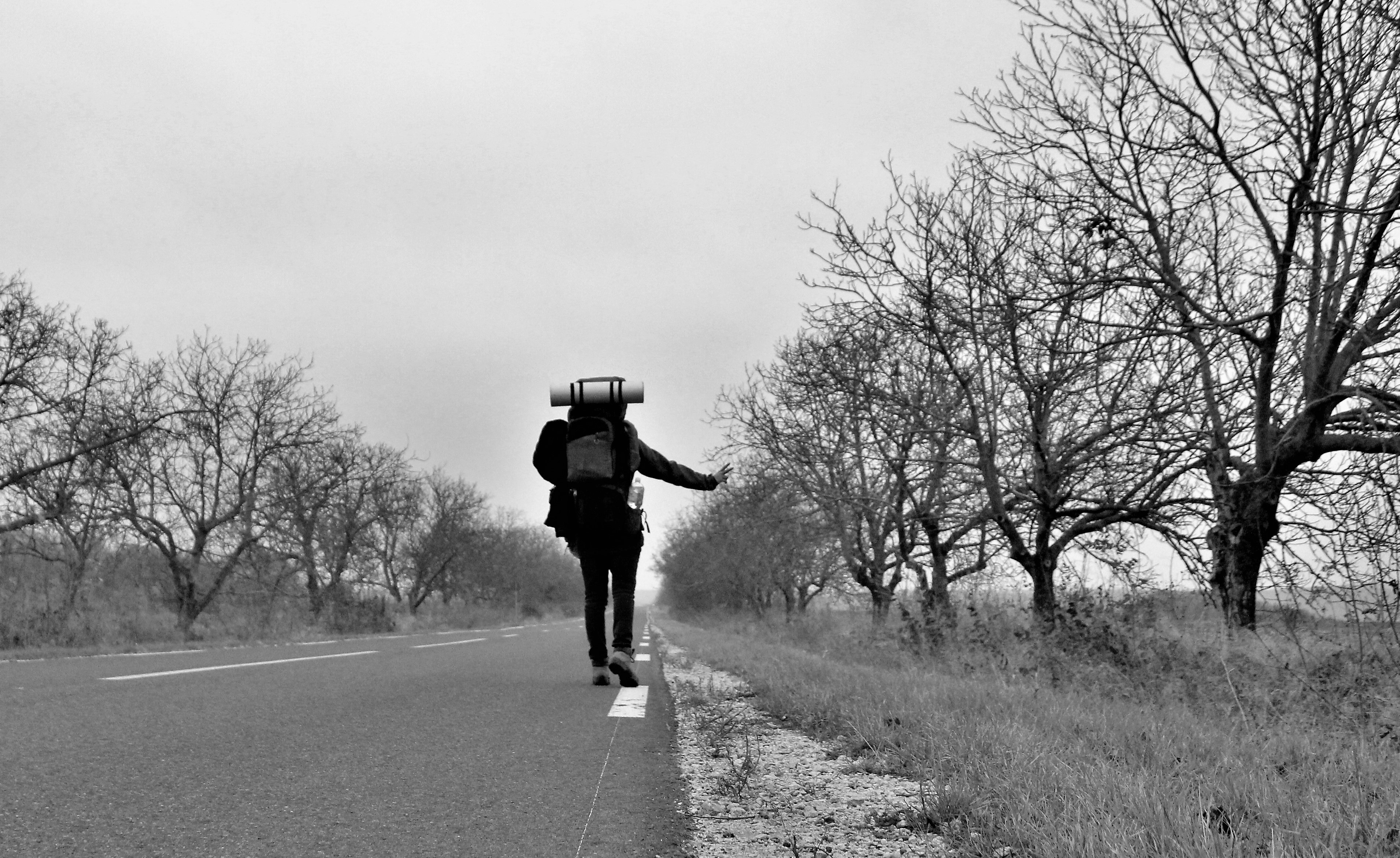 I wear only large and comfortable clothes. Big t-shirts, large trousers or bermudas, big hoodies and not really colourful, “stylish” fancy clothes. That is because I rather to be comfortable and also because all my clothes are donated by other people, so I cannot choose much. But even if I could, I rather to be practical: What do I really need? What lasts longer? Which kind of clothes can I use in more than one season? And this kind of things… Beauty, in my opinion, is only a matter of perception: each one has its own. Plus, I have my head shaved. And I when I am travelling, I carry my 70 Litres backpack, plus a 30 Litres one in front of my body. Basically, I look like a pregnant turtle (in fact, my backpack is green), with no “attractive” skin (clothes).